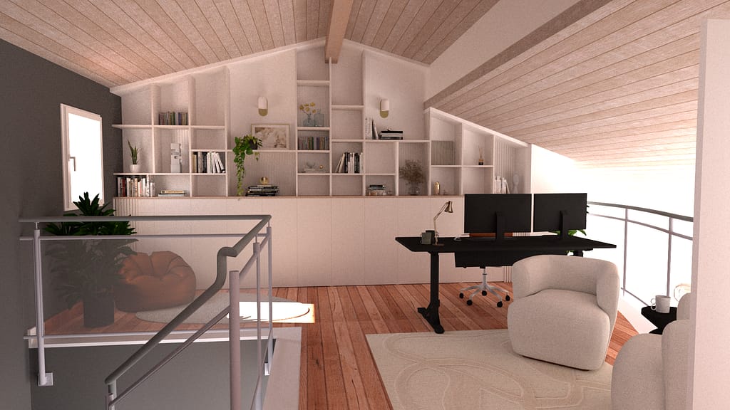 Projet de décoration et d’architecture d’intérieur pour une famille qui souhaitait un espace dédié au télétravail et au rangement de leurs papiers administratifs et de leurs livres. Le but est de conserver le bureau et les couleurs existantes et de faire en fonction !